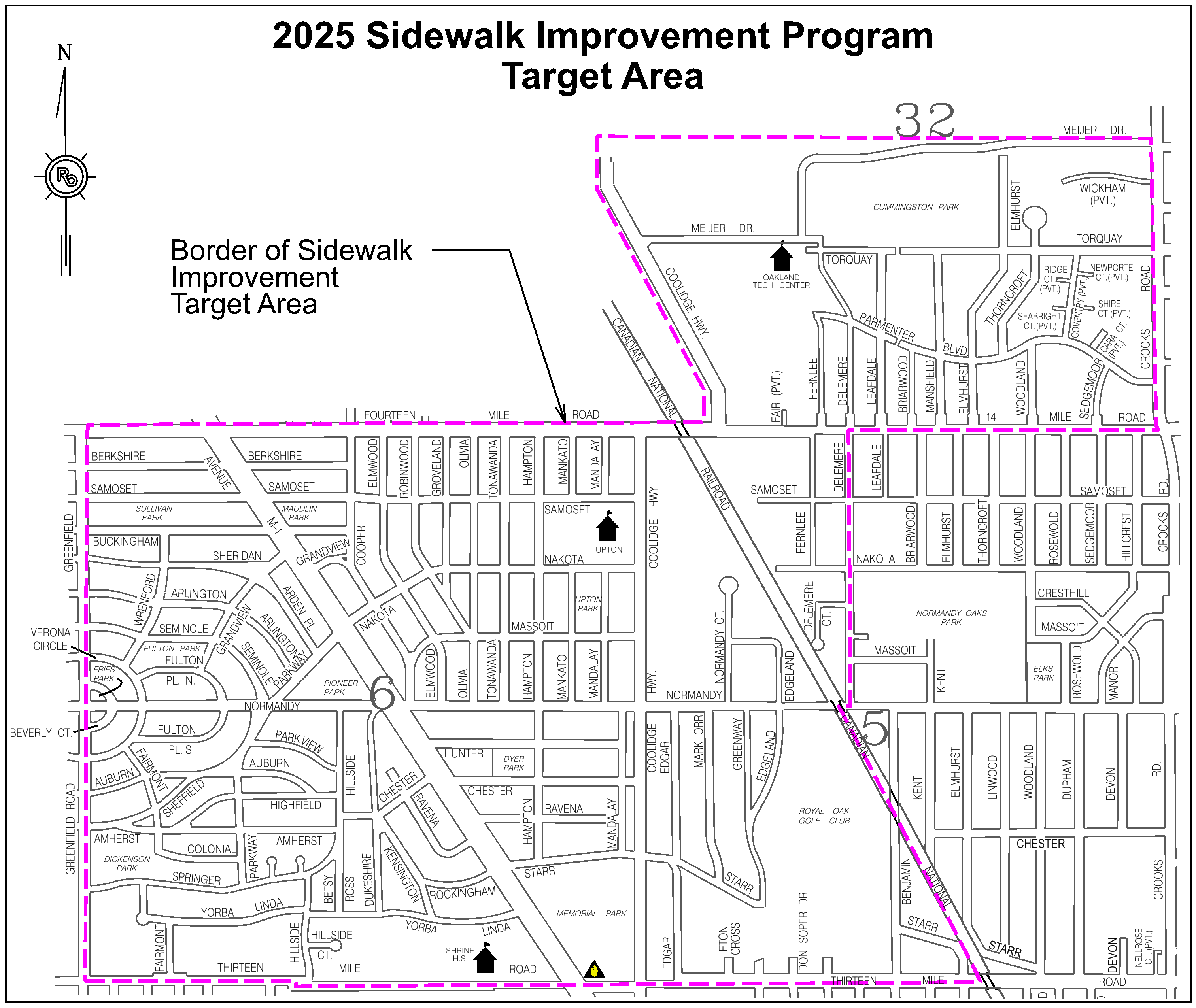 The Sidewalk Improvement Program includes maintenance of existing sidewalks and the installation of new sidewalks where they currently do not exist. Providing and maintaining continuous sidewalks that link neighborhoods, schools, and community facilities is a primary goal of the city’s master plan as well as Royal Oak’s Non-Motorized Transportation Plan.